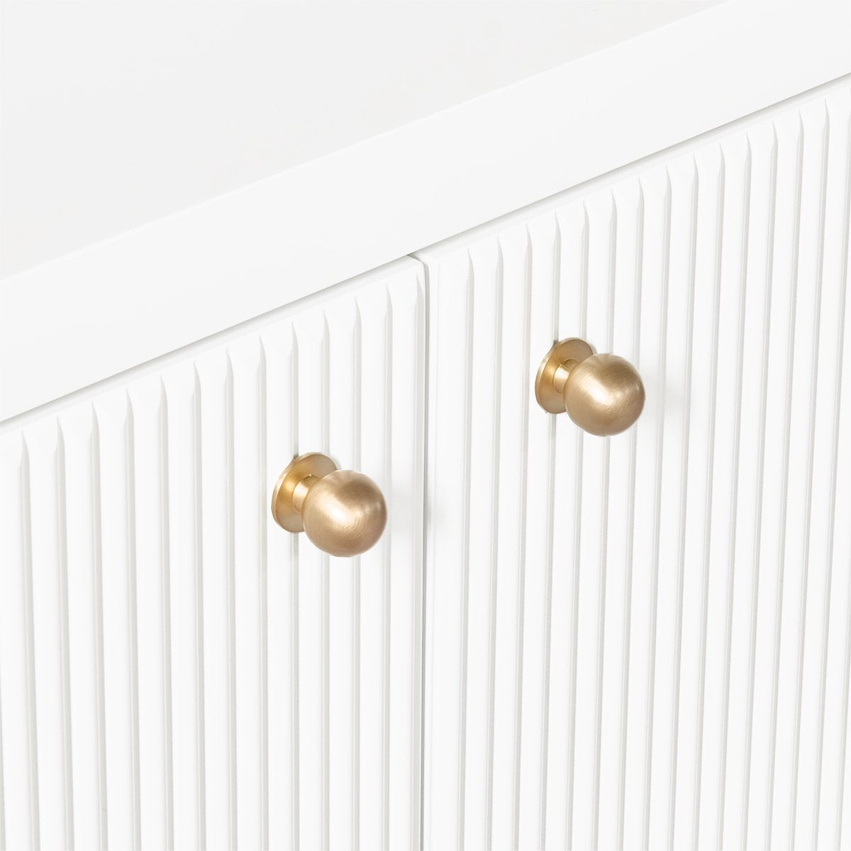Enveloping your space with an airy feel, the Ariana Entertainment Unit is designed with both functionality and refined elegance in mind. Featuring four doors with fluted detailing and brushed gold handles, this unit offers a seamless blend of texture and sophistication. The crisp white finish enhances its fresh, modern appeal, making it a perfect statement piece for contemporary and classic interiors alike. Scaled for both maximum storage and design presence, it provides ample space to keep your living area sleek and organised. A timeless addition to any home, the Ariana Entertainment Unit elevates your space with effortless style and practicality.