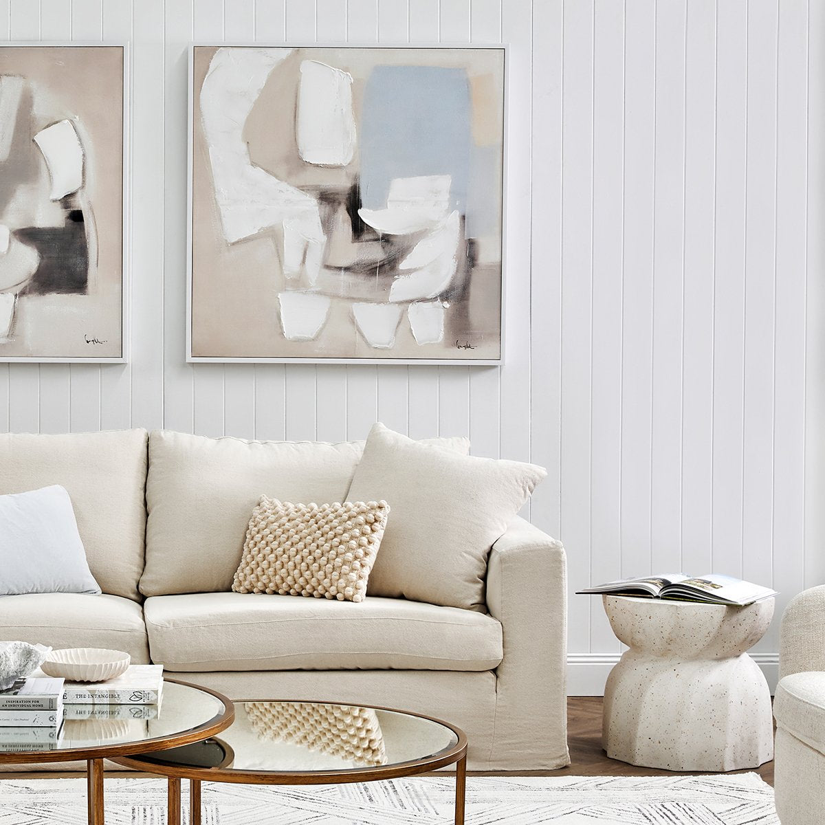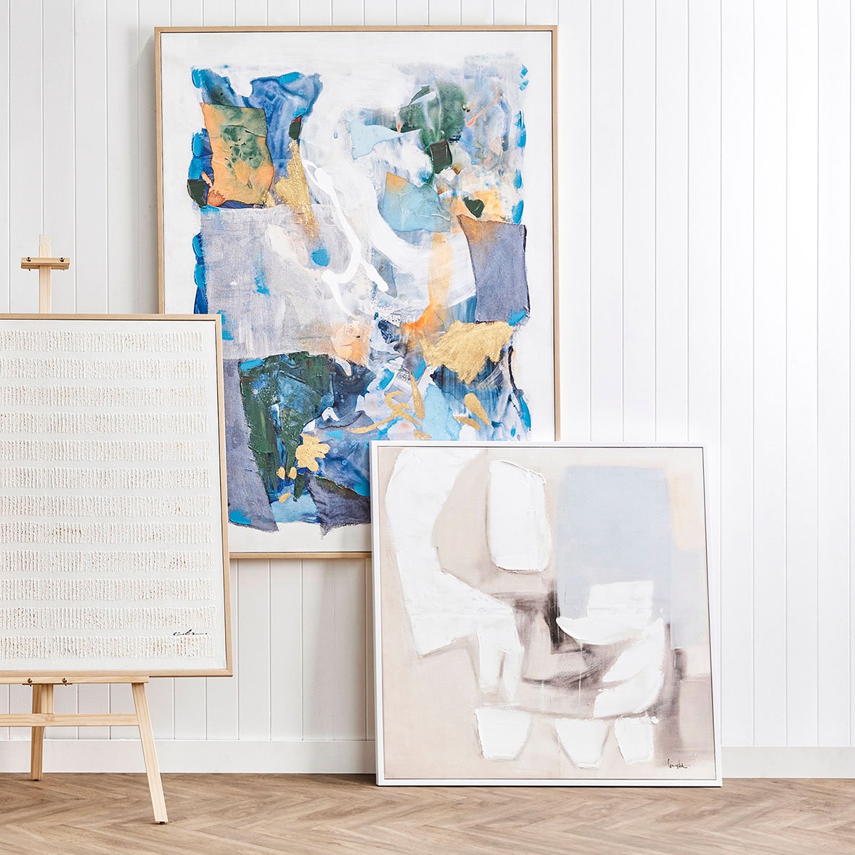 Elevate your living space with the Calming Blues Series of minimalist hand painted acrylic abstract artworks, expertly framed in sleek white. Featuring soft, neutral tones with subtle pops of blue, each piece exudes a sense of calm and contemporary elegance. Perfect for creating a cohesive look when displayed together or as striking individual statements, these paintings are an ideal choice for modern interiors. Enhance your decor with timeless, handcrafted art