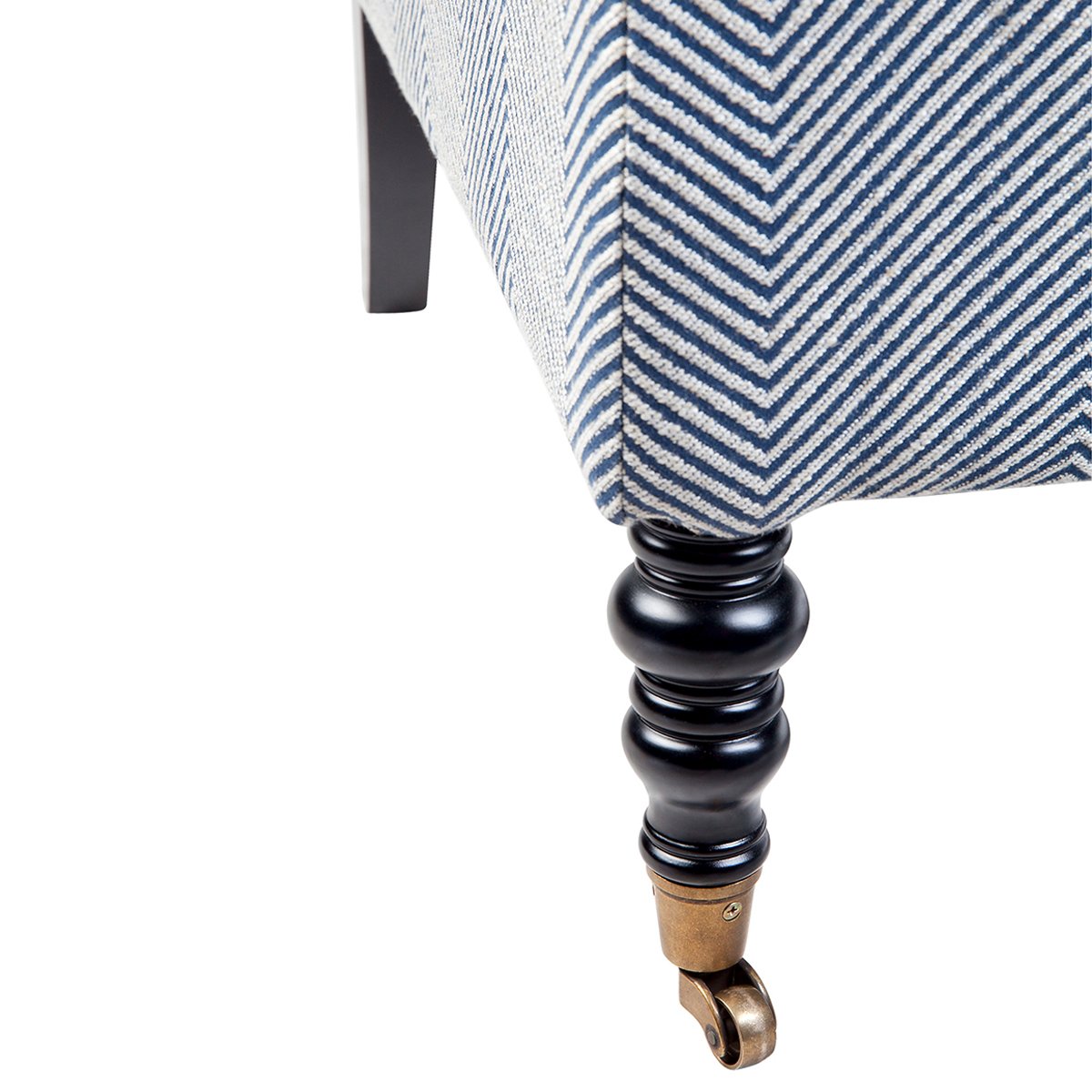 Sumptuously soft, the Candace occasional chair, upholstered in a quality blue & white chevron linen blend fabric, meticulously blends style with comfort. Classic elements such as contrasting blue linen piped edging and black turned timber legs lend traditional charm while the understated design of the Candace occasional chair gives it a relaxed, contemporary vibe. Working in well with most decor styles, from contemporary to Hamptons, the subtle pattern, colour and texture adds designer flair.