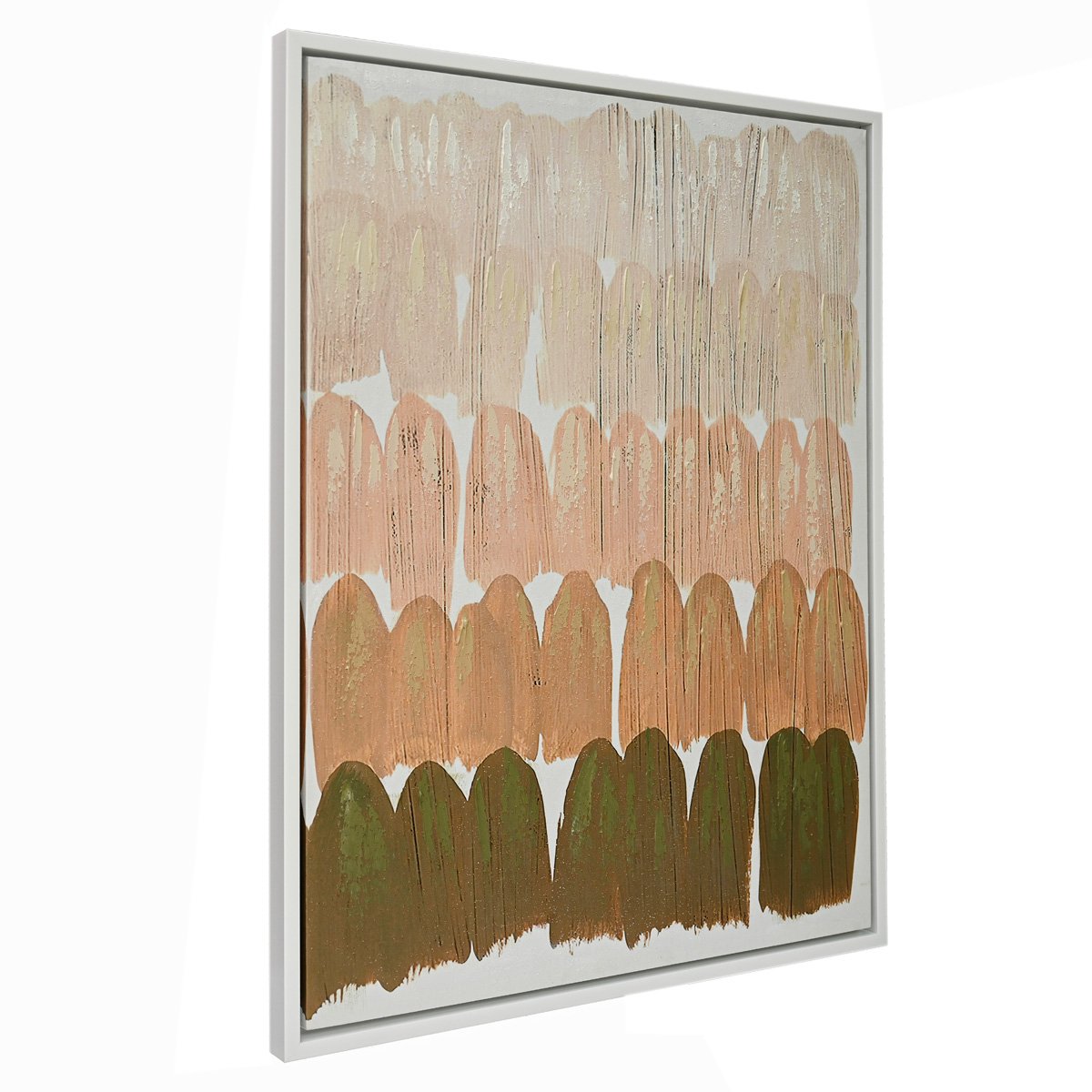 Elevate your space with our exquisite canvas painting, featuring rows of gracefully arched strokes in soothing neutral tones. Each palette evokes a sense of harmony and sophistication, enhancing any room with its understated elegance. Encased within a pristine white shadow box frame, this artwork exudes timeless beauty and modern allure.