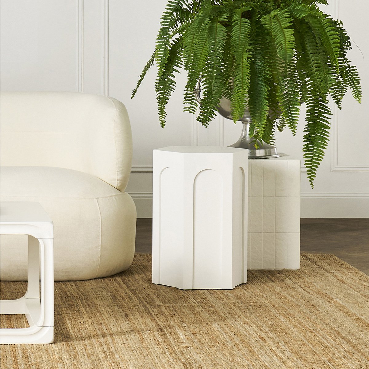 Introduce modern artistry to your interior with the Corinth Side Table. Featuring a striking white mosaic design, this piece combines contemporary elegance with functional versatility. Its clean lines and textured finish create a statement in any space, while its durable construction ensures lasting appeal. Perfect as a side table or accent piece, this timeless design effortlessly complements modern, minimalist, or eclectic interiors.