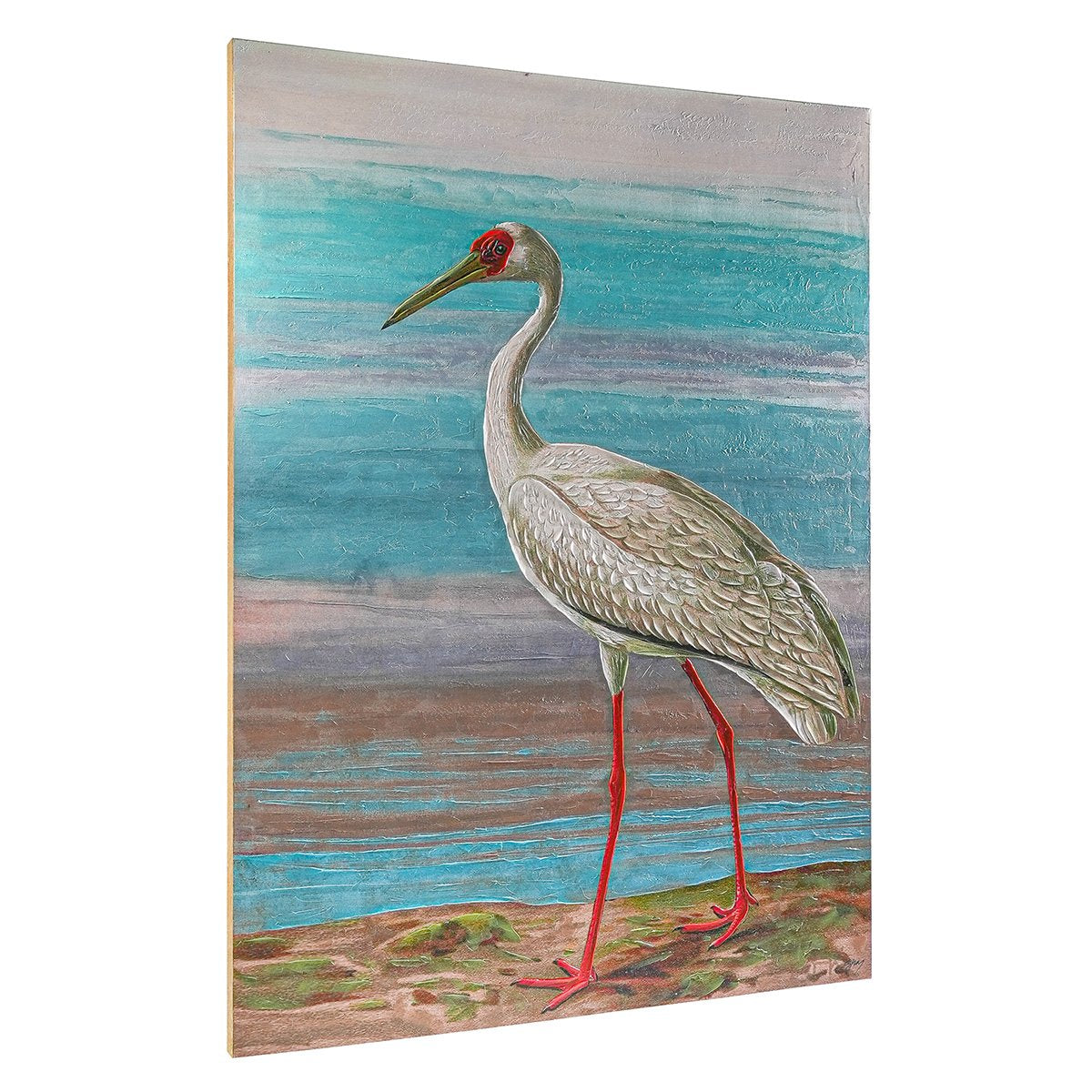 Immerse yourself in the serene beauty of "Crane Series II," a captivating artwork by Shay, an acclaimed American artist. This exquisite piece blends rich textures and vibrant colours, portraying a graceful crane against a tranquil aquatic backdrop. Shay's artistry, influenced by French Provençal charm, brings a timeless elegance to this canvas, reflecting her culinary precision and creative spirit. Ideal for contemporary spaces, it’s a harmonious blend of nature and artistic expression.