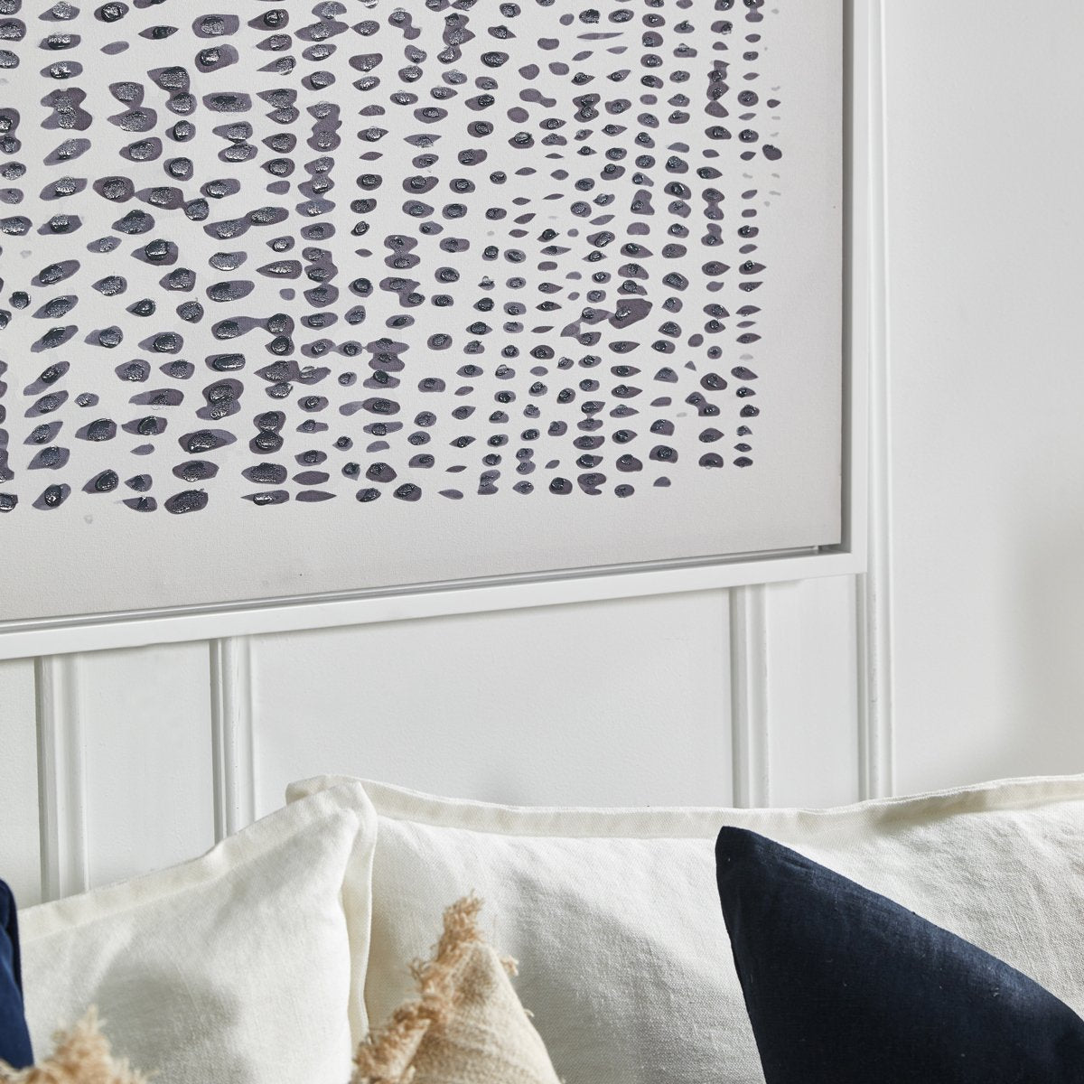 Threads of indigo blue in organic dotted line patterns create an art piece that is detailed yet intriguingly understated. A prime example of beauty in imperfection, the Davenport Blues enhance canvas print works wonderfully with a variety of interior styles and colour palettes exuding an authentic simplicity that resonates with patterns of nature. Mounted in a white shadow box frame, this piece works well on its own or can be paired for striking effect.