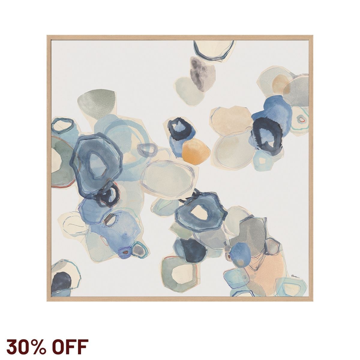 Infuse your space with the tranquil beauty of this hand painted, acrylic abstract artwork, featuring a soothing palette of blues and soft neutrals. The organic, fluid forms evoke the calming essence of water, making this piece a perfect addition to any contemporary interior. Expertly framed in natural wood, it offers a modern touch that blends seamlessly into your decor. Ideal for those seeking to enhance their home with sophisticated, handcrafted art.