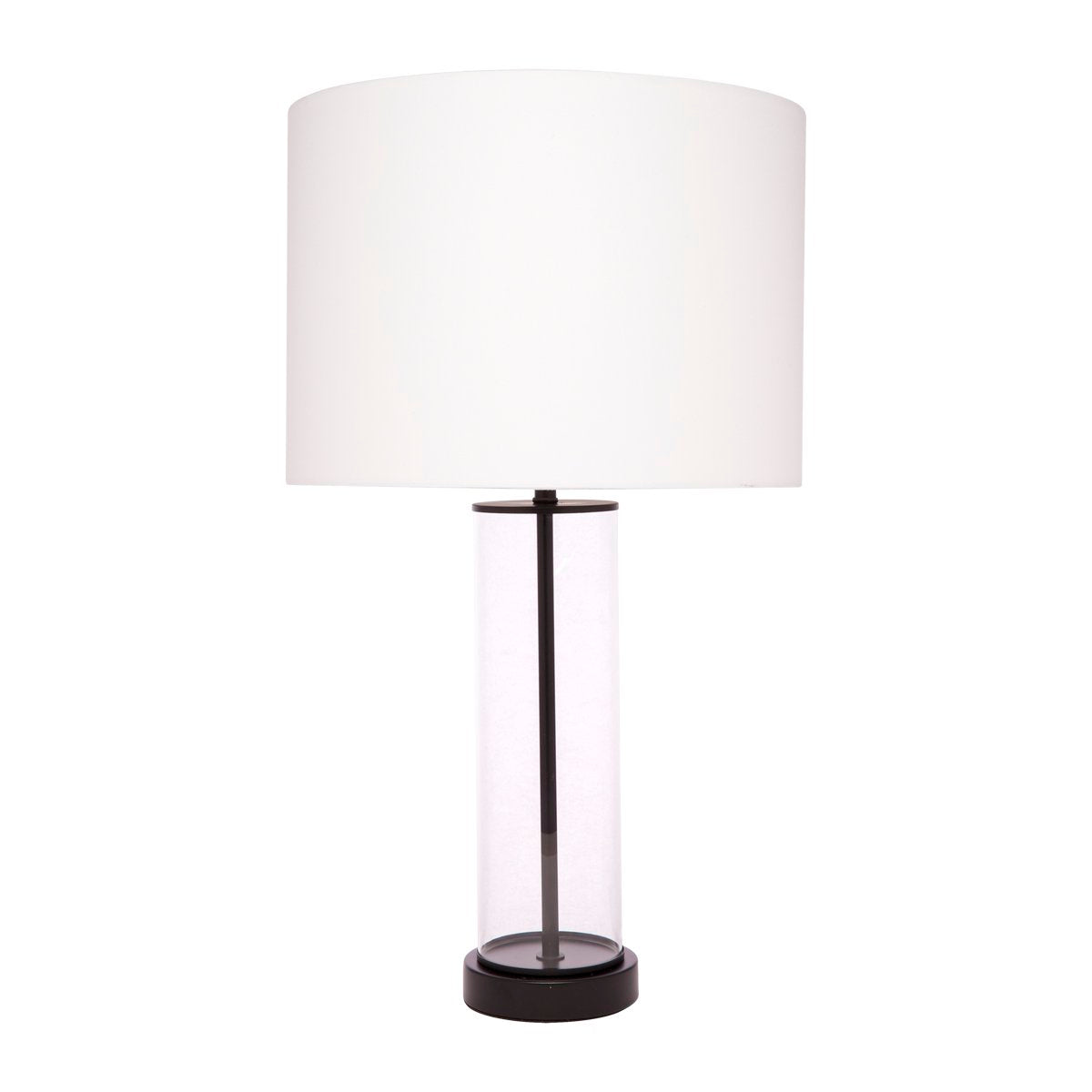 Brighten up your home with the East Side Table Lamp, a perfect blend of elegance and modern design. Featuring a clear glass body paired with a matte bronze-black metal rod and trim, this lamp adds a sophisticated touch to any room. Its contemporary take on a classic design is complemented by a white drum cotton shade, offering both style and functionality. Illuminate your living space with timeless charm and modern flair with the East Side Table Lamp.
