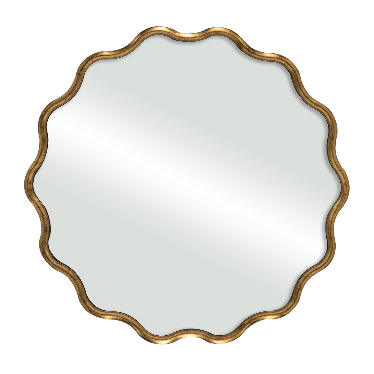 Embracing modern moods, the Emilie round wall mirror features a distinctive wave design frame in an elegant hand rubbed antique gold finish. Adding a touch of contemporary luxe to interiors, the Emilie round wall mirror is an undeniably versatile piece, created to blend exquisitely with a range of interior styles.