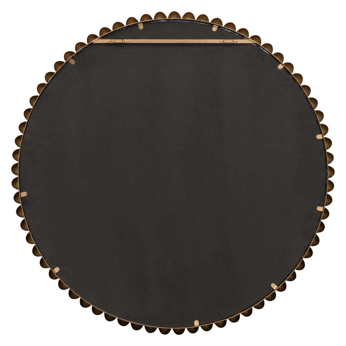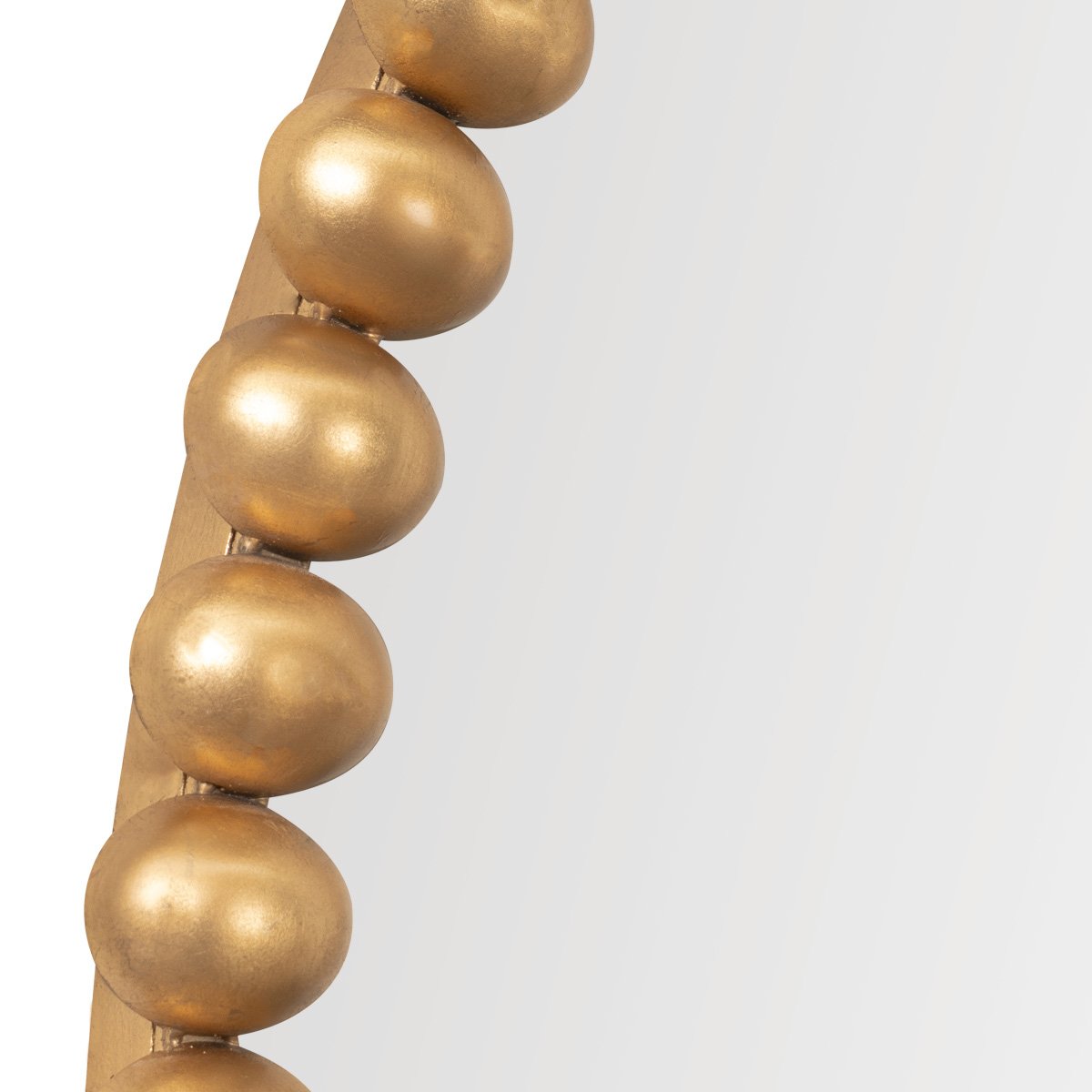 A statement of modern elegance, the Esme round wall mirror creates a striking feature with its bold 105cm circular iron frame embellished with oversized egg-shaped beading in an elegant gold leaf finish. Effortlessly timeless, the striking simplicity of the Esme round wall mirror easily blends with both contemporary and classic interiors. Also available in black.