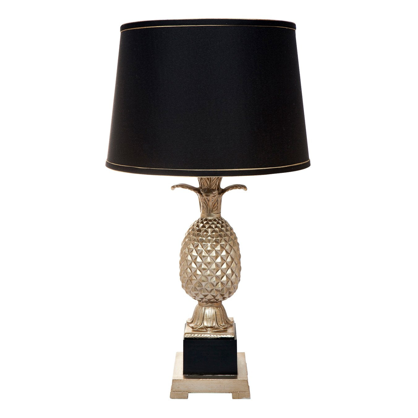 Add a touch of unique style to your space with the Harper Pineapple Table Lamp. Designed with a textured resin base and elegant gold leaf pineapple leaves, this lamp creates a warm, ambient glow that enhances any room. Perfect for your entryway side table, it pairs effortlessly with your favorite photos and decorative accents, crafting a cool, eclectic vignette that will impress guests. The lamp is topped with a black linen tapered drum shade, featuring a sophisticated gold trim to complete its modern look. Elevate your décor with this statement piece that blends fun and functionality.