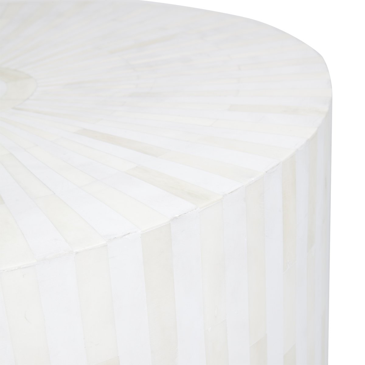 With tonal beauty and luscious curves, the Makayla side table is a versatile piece that adds unique character to your interior. Handcrafted by expert artisans, the delicate bone inlay forms an intricate pattern that brings subtle interest and accent to your bespoke living space or bedroom. Generously proportioned the Makayla side table floats above a gold plinth, creating a visual sense of air.