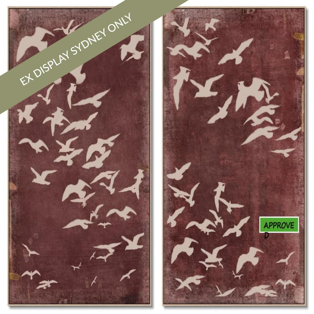 Migration Set of Two Oil on Canvas Painting – Maroon - OUTLET NSW