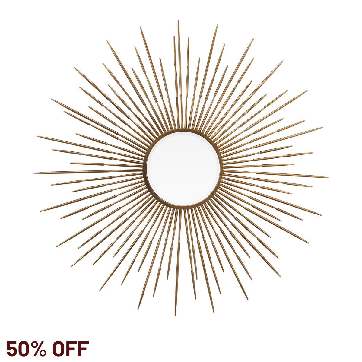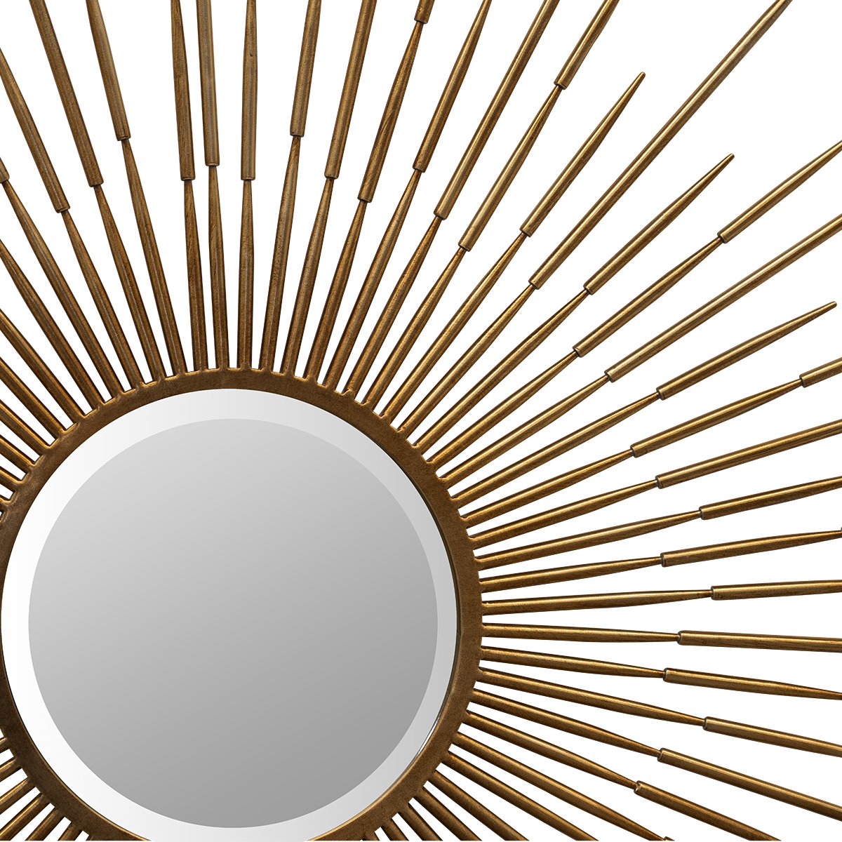 Simply stunning, this is the radiant Nova Wall Mirror. Featuring a captivating sunburst design and antique gold finish, this mirror adds a touch of glamour to any room. Ideal for modern and contemporary interiors, it enhances light and depth, creating a more inviting atmosphere. Transform your decor with the Nova Wall Mirror, perfect for living rooms, bedrooms, or entryways.