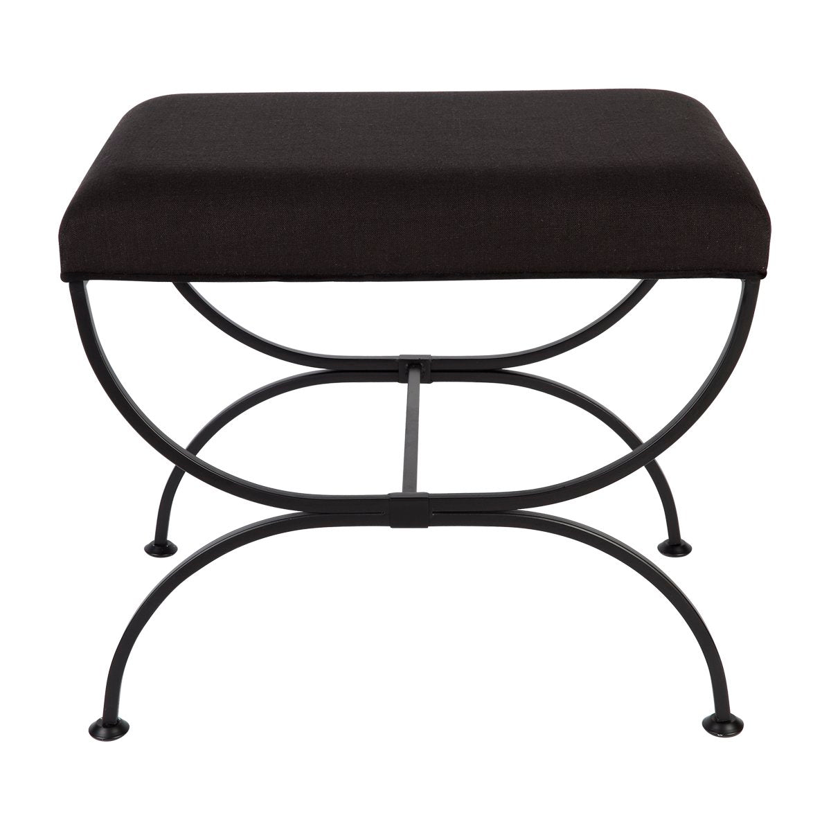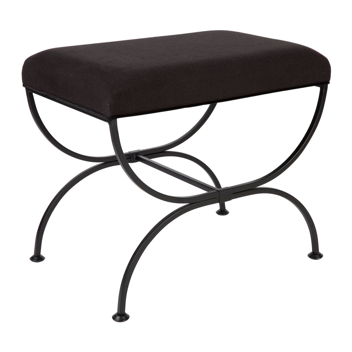 Natural linen and viscose upholstered stool. Cross leg style made with solid iron powdercoated black frame