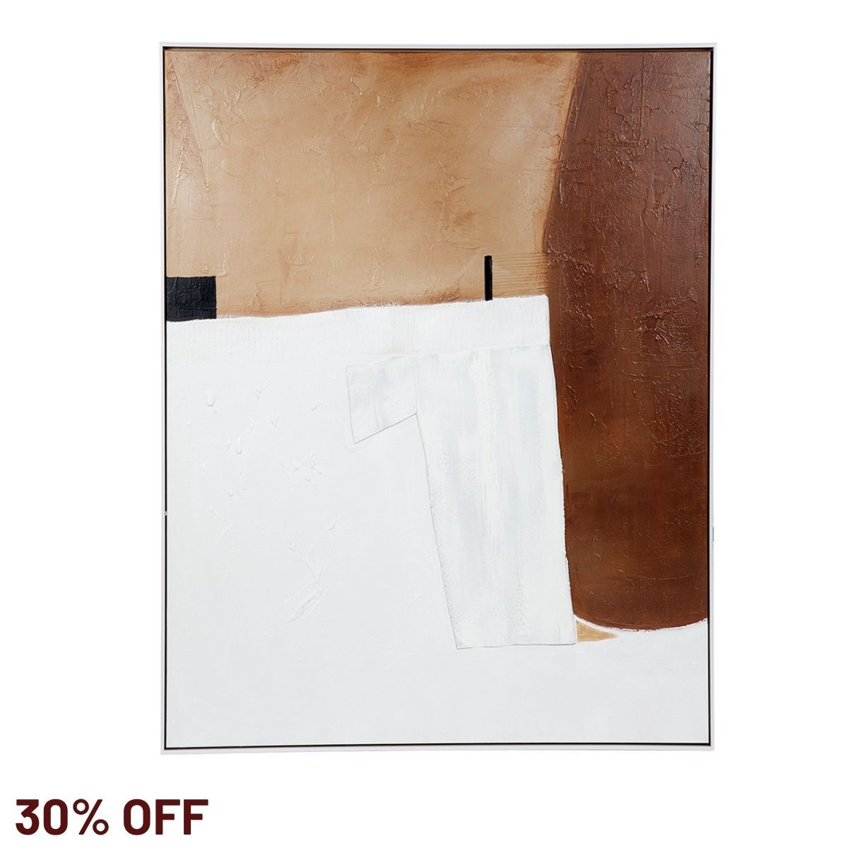 Featuring warm, earthy tones and a contemporary composition, the medium Ochre Dream oil on canvas – at 90 x 110cm - is a striking piece where gorgeous three-dimensional texture interlocks with bold imperfect lines and shapes to create an artwork that is confident and interesting, yet subtle enough in its neutral tones and understated arrangement to compliment any interior space. Encased in a matt white shadow box frame, each piece is individually hand painted on linen canvas. Also available in a larger 140cm square.