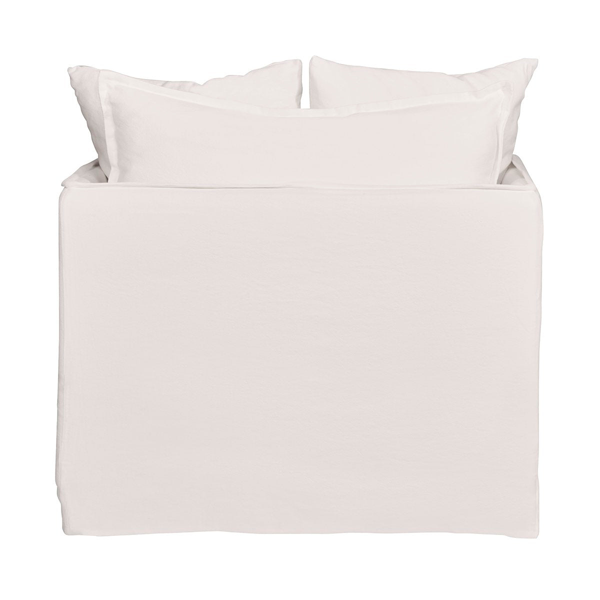 Experience the epitome of Hamptons-inspired luxury with our Palm Beach Arm Chair. Indulge in pure comfort with soft feather and foam-filled seating, ensconced within a robust hardwood frame. Seamlessly blending elegance with practicality, draped in pristine white linen, a harmonious blend of 50% cotton and 50% linen. Featuring removable covers for effortless maintenance and reversible cushions for enhanced adaptability, elevate your interior design with the exquisite sophistication of the Palm Beach collection, available in white, slate grey, or natural linen, with coordinating sofas to complete the look. Professional dry cleaning services only.