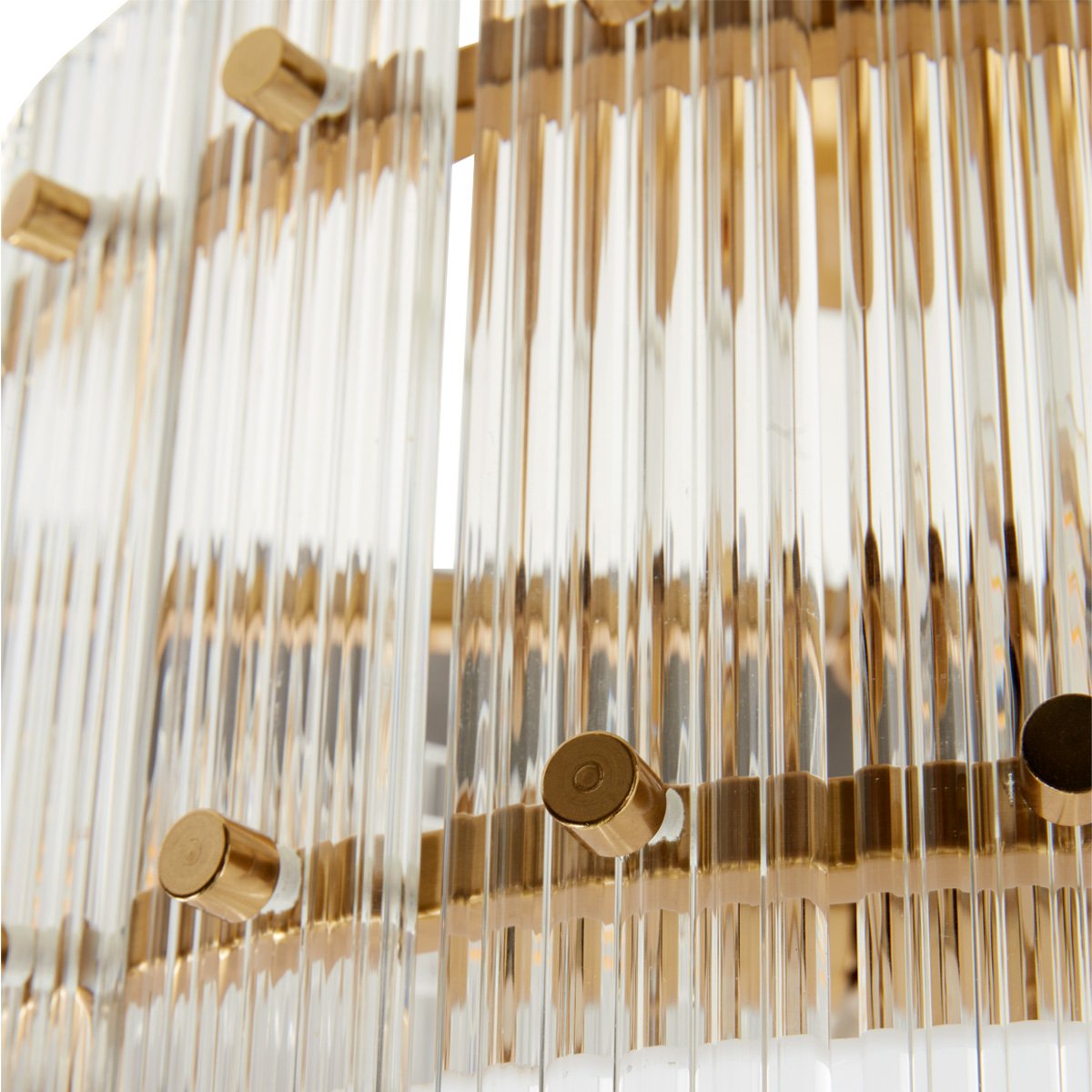 Elevate your home lighting with this luxurious flush mount, featuring a brushed gold frame and cascading glass rods. The intricate design exudes sophistication, while the frosted diffuser ensures a warm, even glow. Perfect for low ceilings, this fixture combines functionality with elegance, making it ideal for living rooms, bedrooms, or hallways. Its timeless design adds a touch of glamour to contemporary and classic interiors alike.