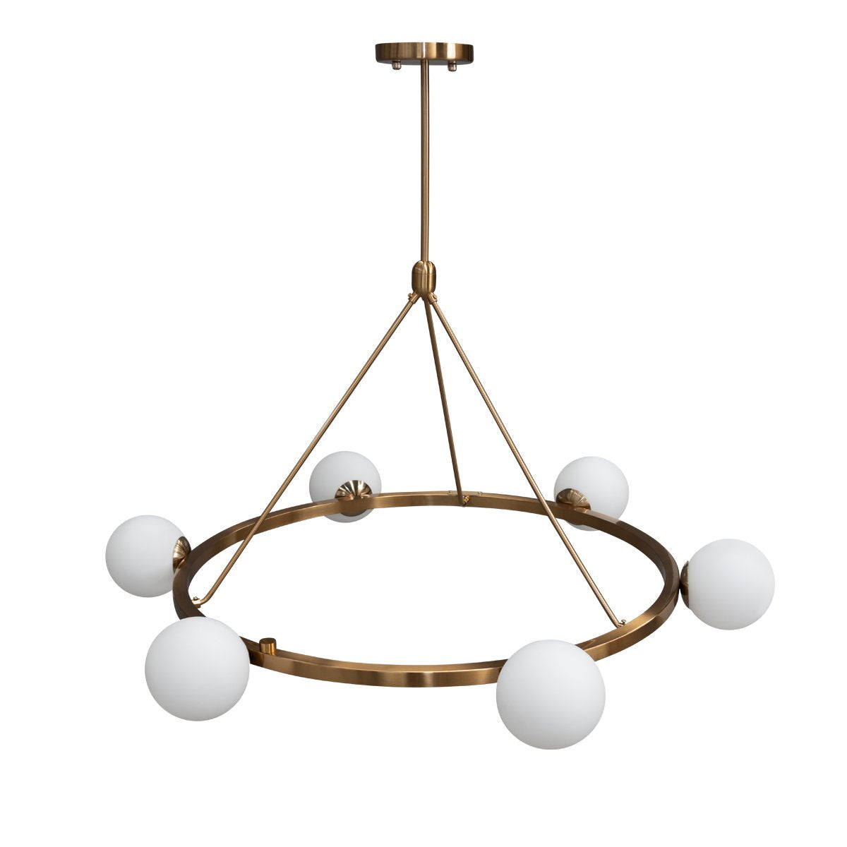 Frosted milk orbs float amidst a circular brass frame to create a gentle, warm radiance. Fall in love with the luminescent Mid-Century Modern Payton Pendant. Ideal for dining rooms, living areas, or entryways, its timeless design and high-quality construction ensure lasting beauty and modern functionality.