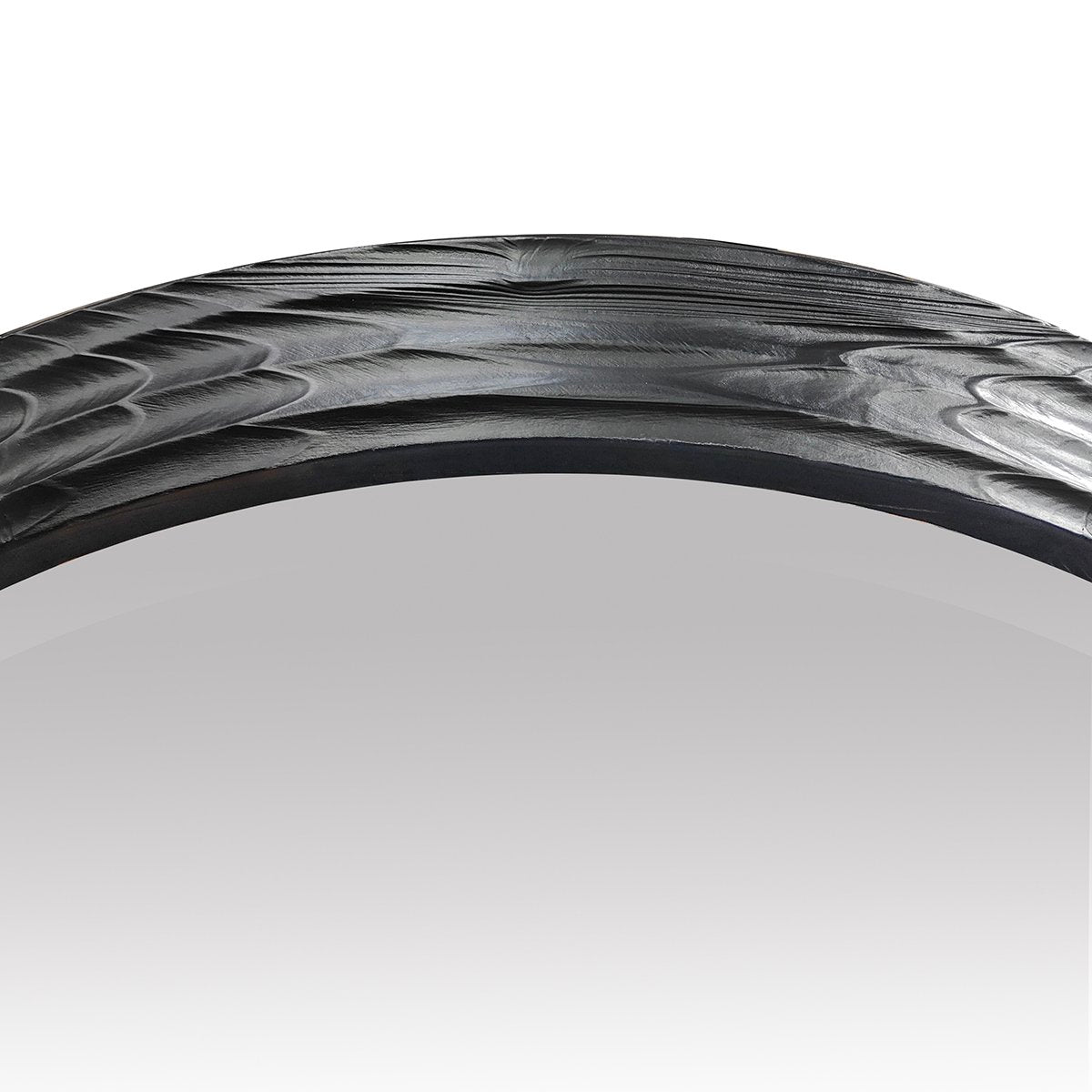Striking in its simplicity, this Penrose Wall round bevelled mirror is designed to bring understated elegance to any interior. Crafted from firwood with a matte black painted finish, its subtly textured frame enhances the organic grain, adding depth and character. The clear bevelled mirror reflects light beautifully, creating an open and inviting atmosphere. A versatile addition to living rooms, entryways, or bedrooms, this mirror blends effortlessly into both modern and classic décor styles.