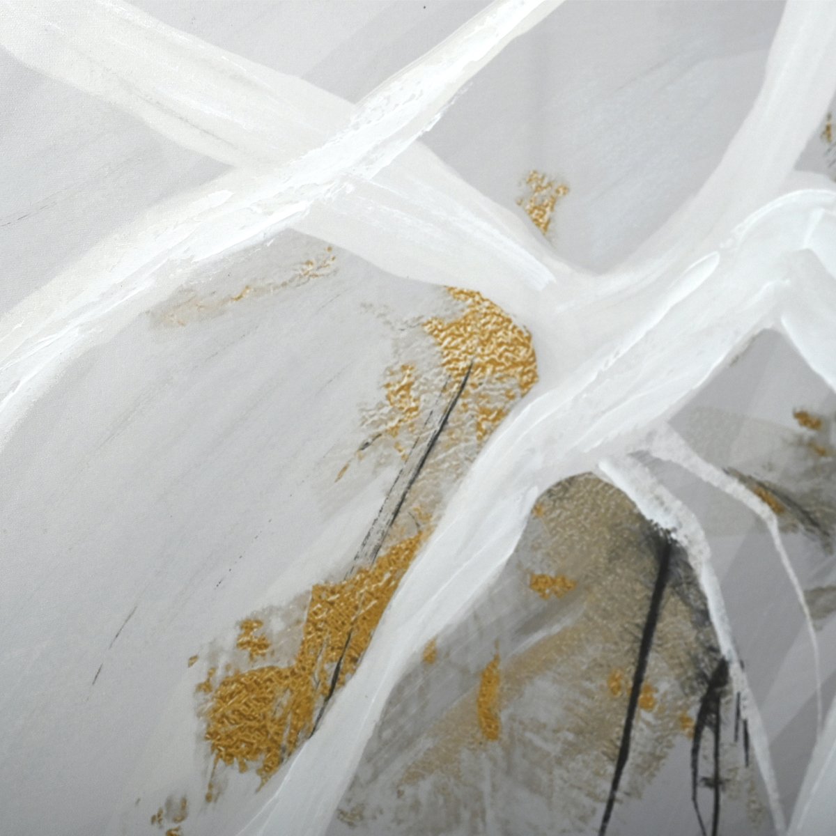 A composition inspired by nature, Rivers of Ideas Series II enhanced canvas print creates a serene mood through the use of flowing brush strokes and a fresh, neutral colour palette with metallic highlights. Designed to be paired with Rivers of Ideas Series I for ultimate effect, Rivers of Ideas is mounted in an elegant gold shadow box frame.