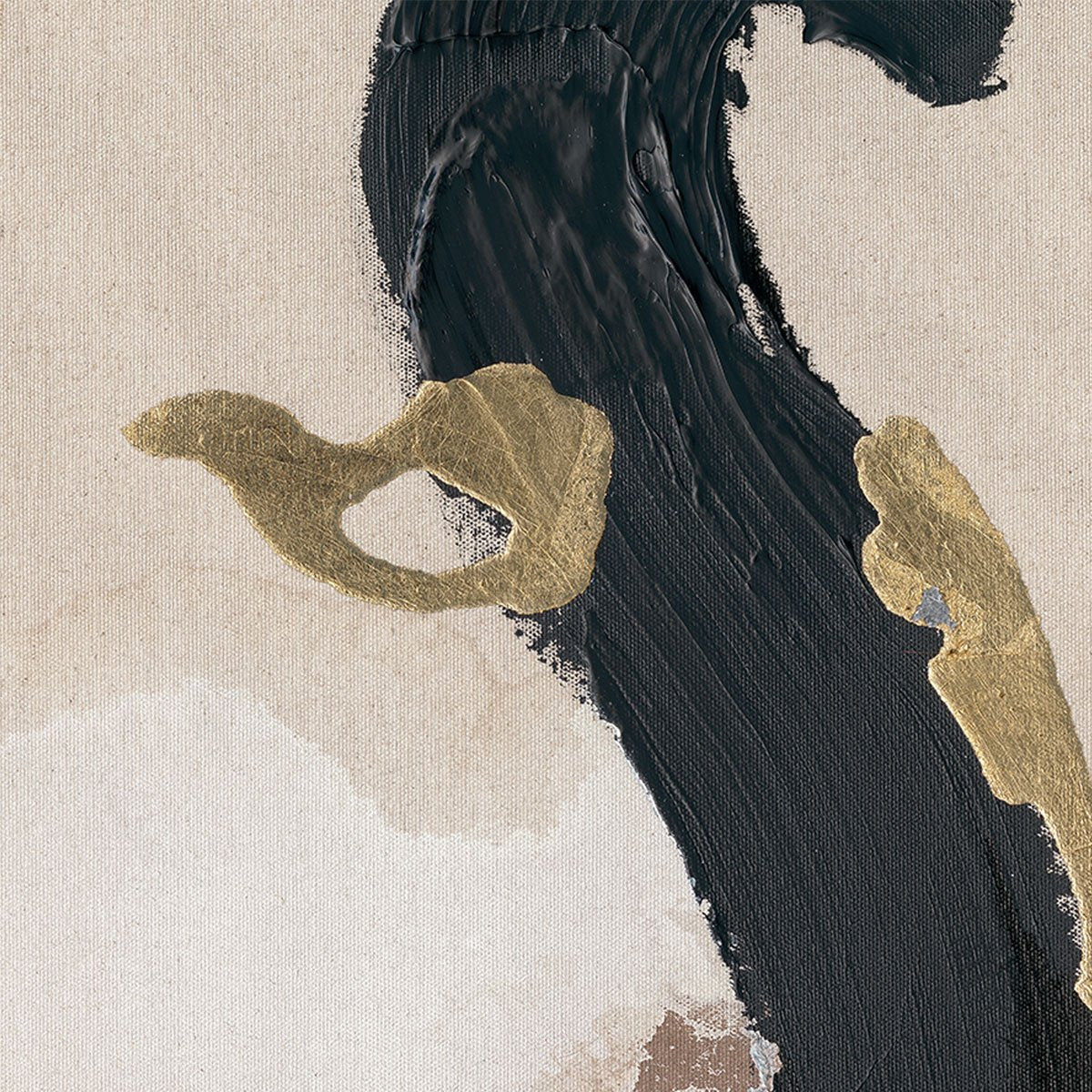 Embrace the abstract elegance of this stunning hand-painted artwork series, where bold black strokes intertwine with subtle gold accents on a neutral canvas. Each piece, sold individually or as a cohesive set, brings a sophisticated, modern touch to any space. Perfect for minimalist or contemporary interiors, this series captivates with its dynamic composition and refined colour palette, making it a timeless addition to your art collection.