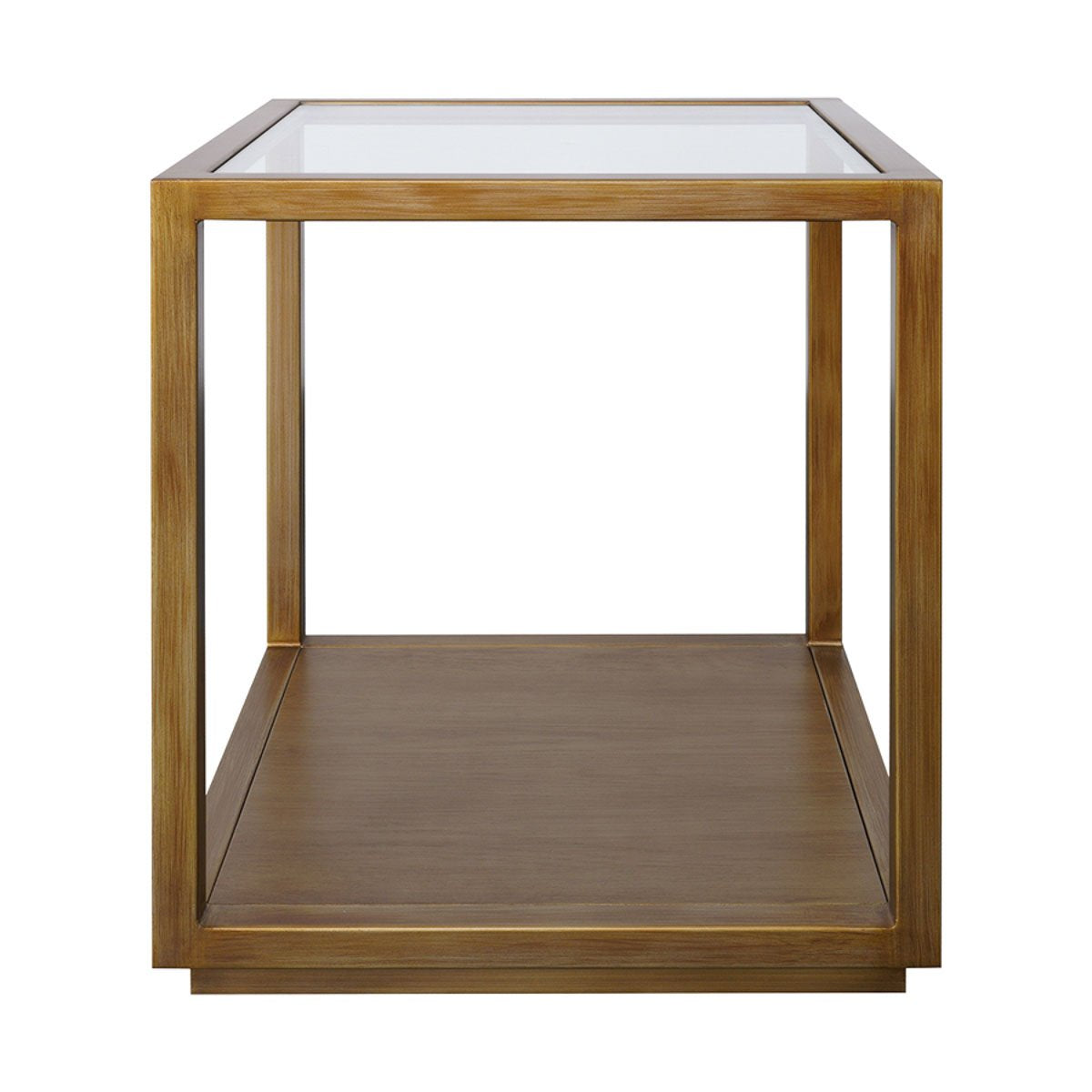 The Sadie Square Side Table introduces a refined contrast of antique gold-finished metal and sleek tempered glass, designed to bring a touch of luxury to modern and classic interiors. Available in two sizes, this versatile piece infuses any setting with modern elegance and character. The tempered glass top enhances natural brightness, while the sturdy metal frame in an antique gold finish offers both durability and a sophisticated statement. A lower shelf provides added functionality, perfect for storage or curated displays. Whether styled beside a sofa, armchair, or bed, this versatile side table elevates your home with timeless appeal.