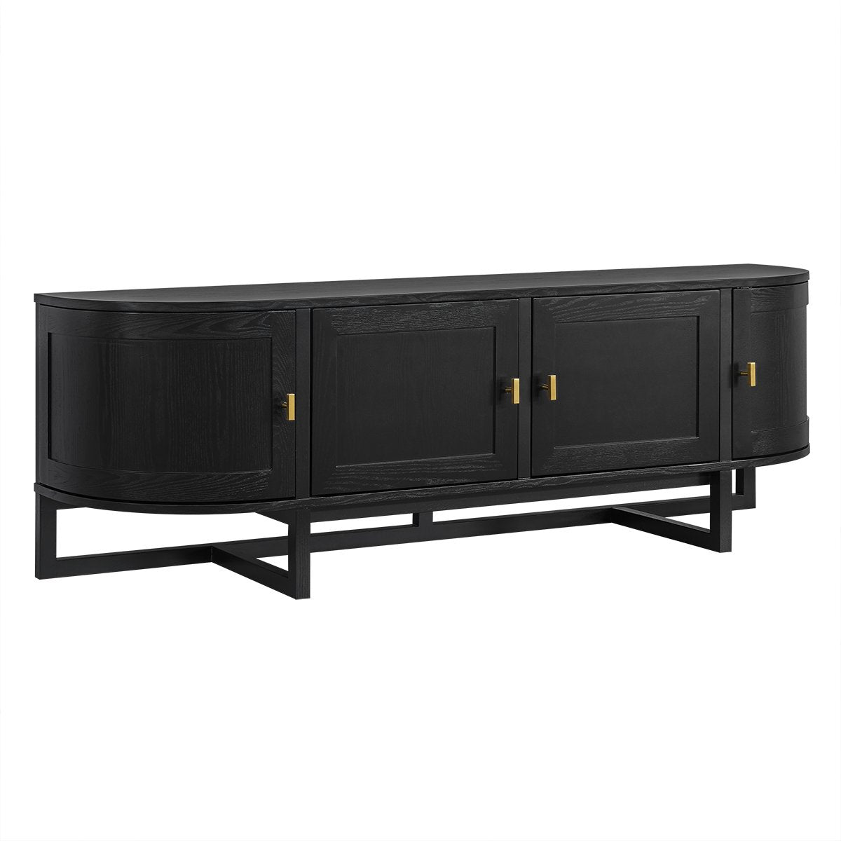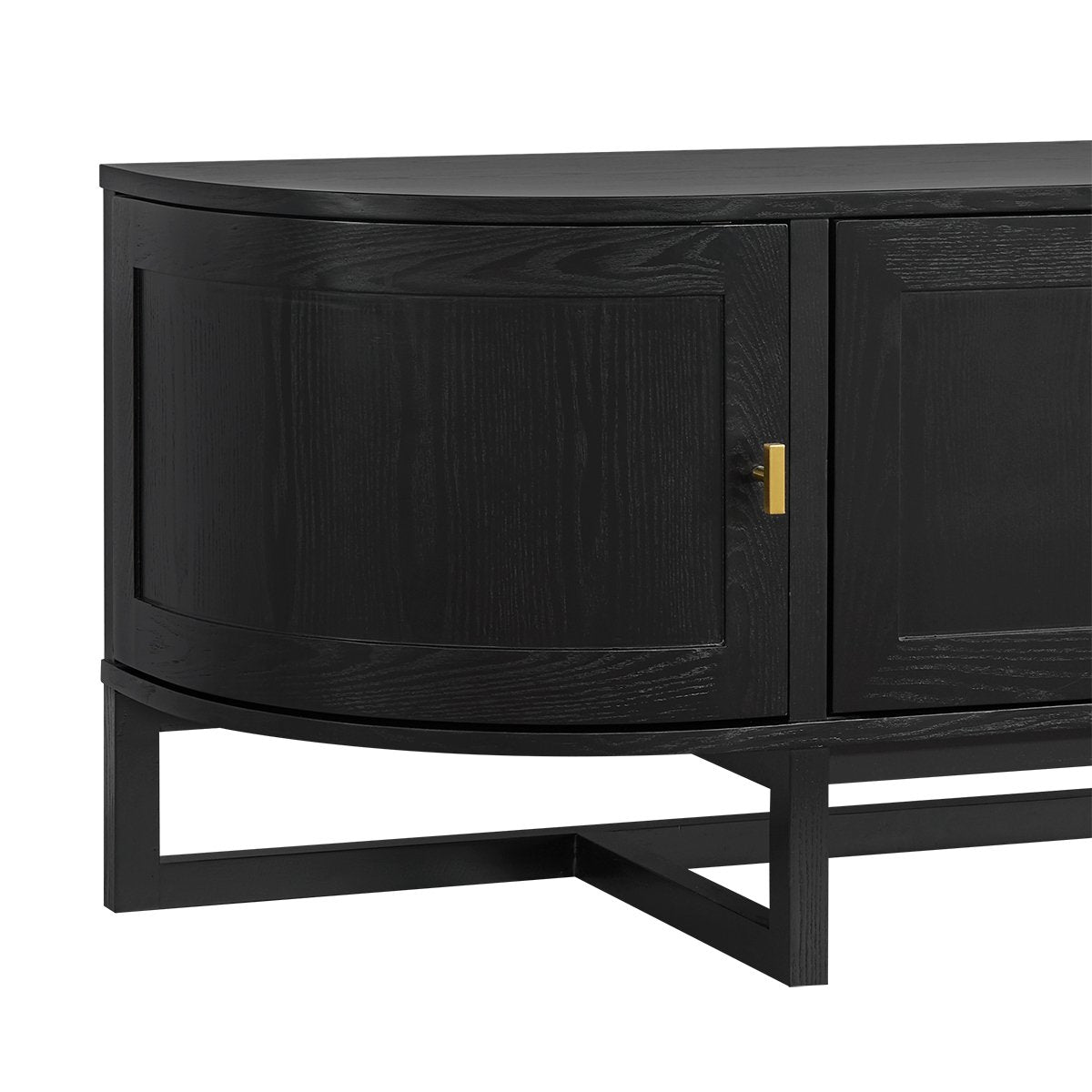 The Theodore range expands with the introduction of the Theodore Entertainment Unit – a seamless blend of function and form. Echoing the signature demilune silhouette and refined craftsmanship of the collection, this piece offers ample storage while elevating living spaces with its sculptural charm. Finished with sleek brushed gold hardware and a clean-lined interlocking base, it makes a sophisticated statement in any setting. Available in both black and white, this elegant design complements a variety of interior styles with timeless appeal.