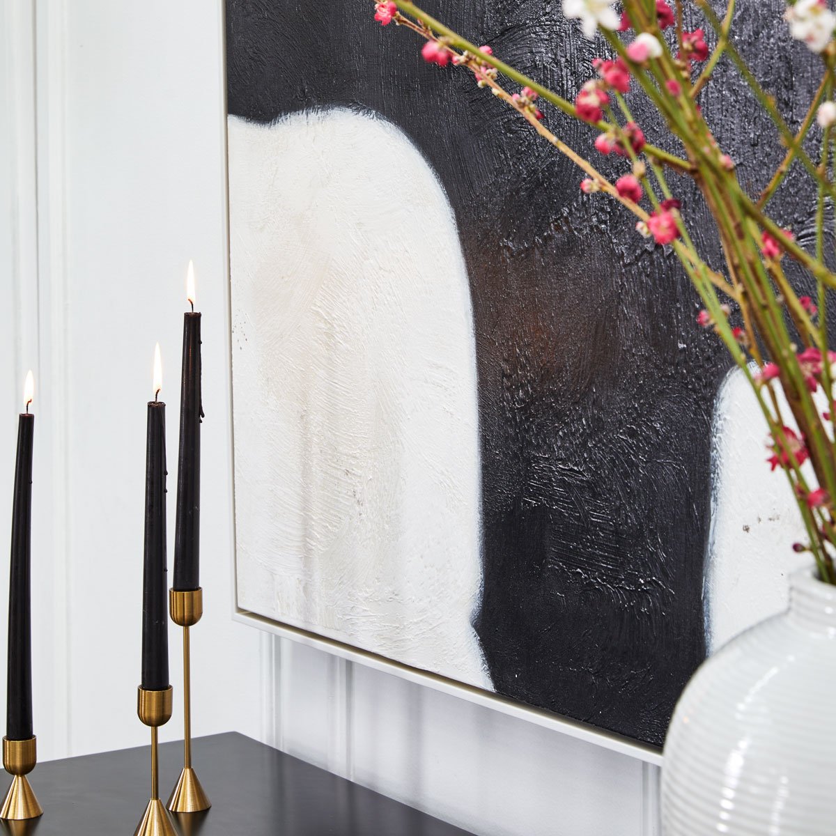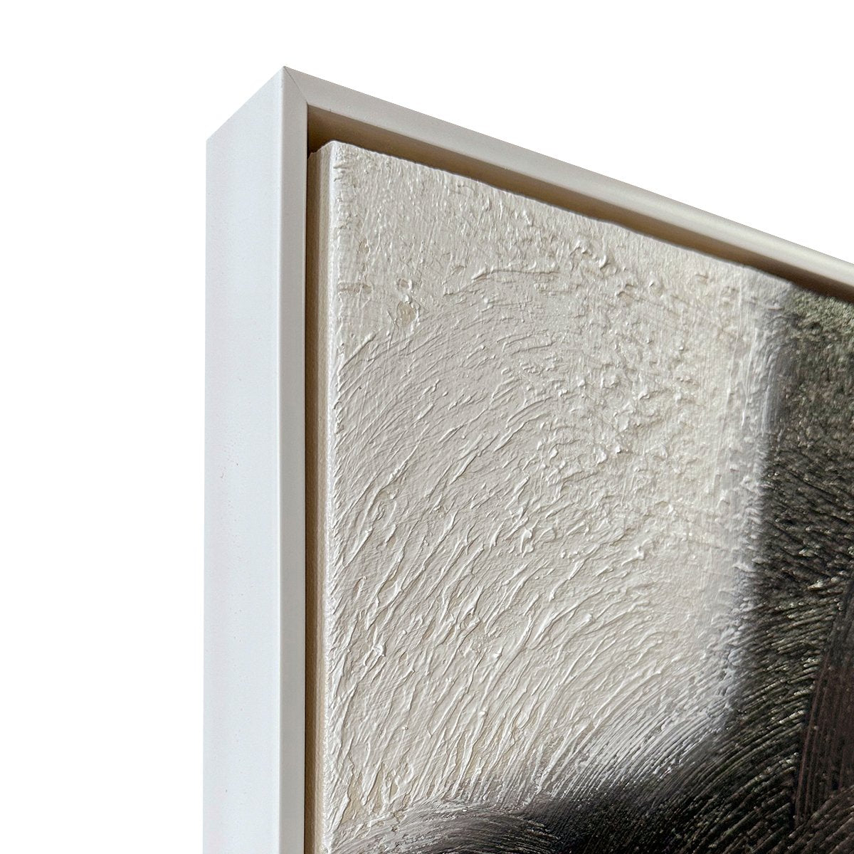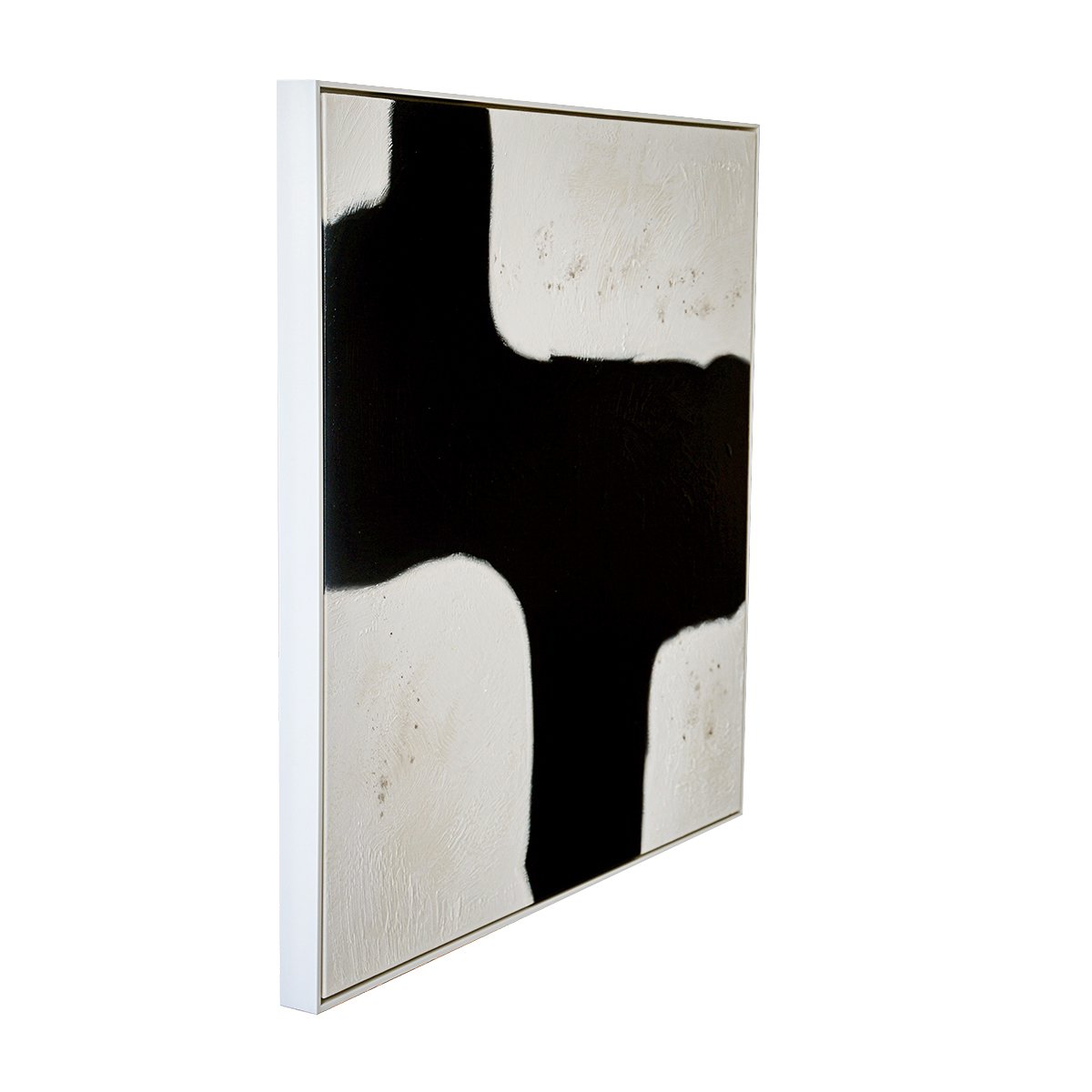 Symbolic of the Lower Manhattan streetscape, the Tribeca oil on canvas painting oozes contemporary cool with textured brush strokes and bold, elemental forms ensuring its urban appeal. Tribeca medium, at 100cm square, is mounted in a chic matt white shadow box frame, its monochromatic palette effortlessly co-ordinating with a majority of interiors. Also available in a larger 140cm format.